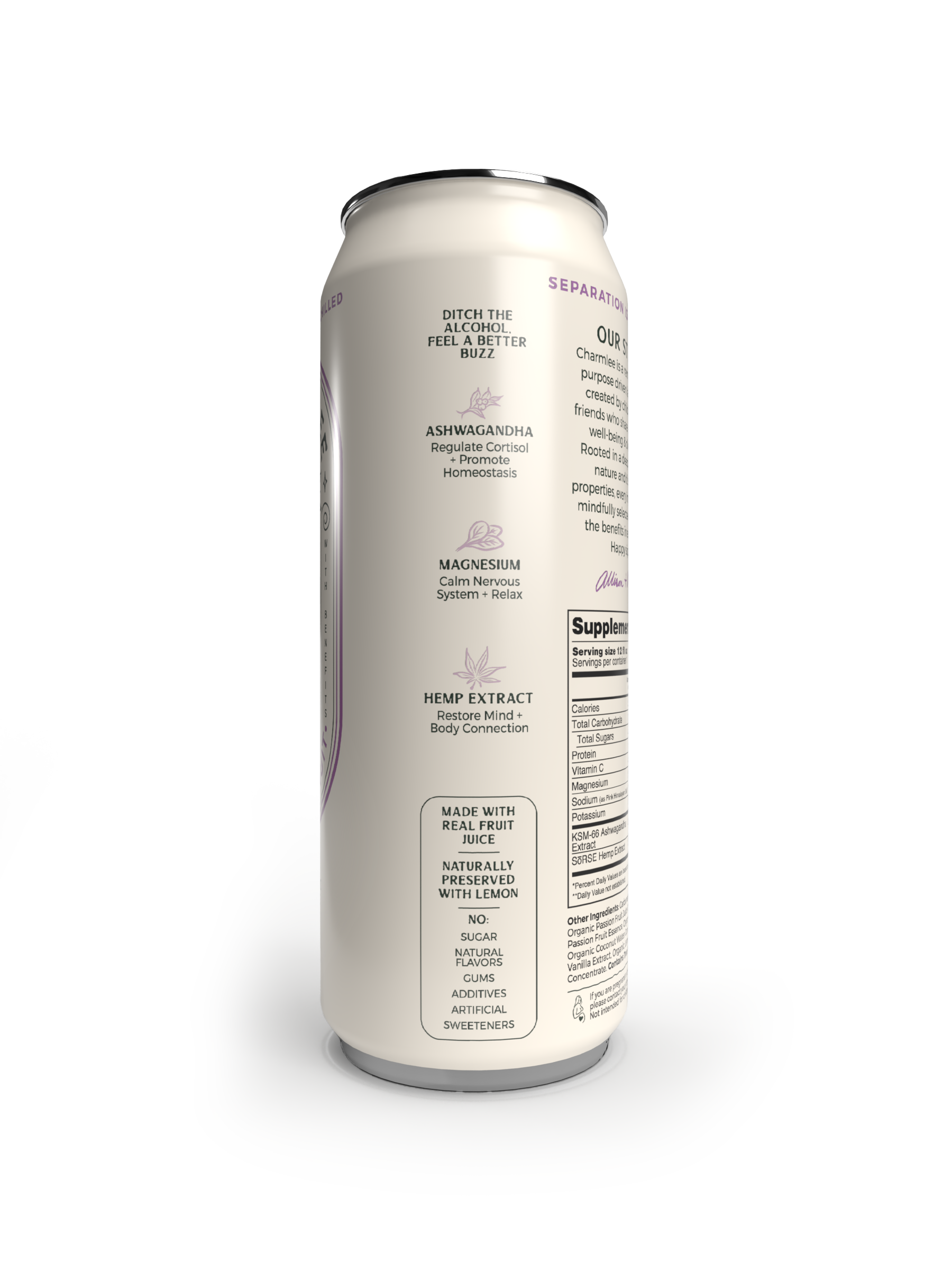 Soothe your soul with a can of Charmlee Calm. Every sip brings you back to you, with a unique blend of grounding ingredients curated to bring your body and mind back into homeostasis. Breathe deep, feel like you again, with Charmlee Calm.